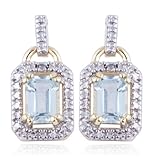18k Yellow Gold Plated Sterling Silver Genuine Blue Topaz and Diamond Accent Post Earrings | |